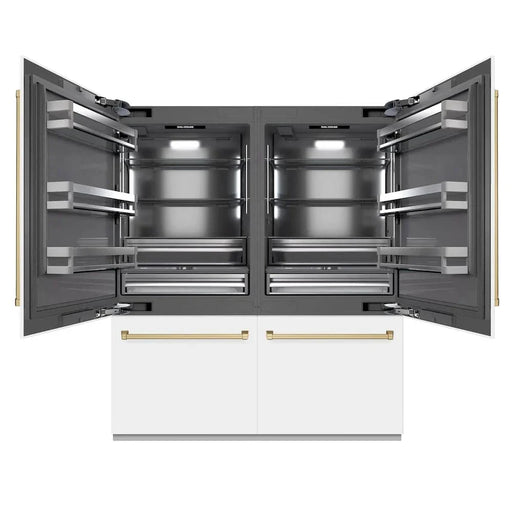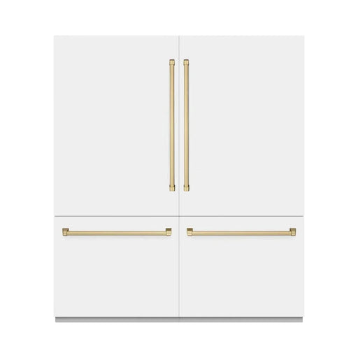 ZLINE 72" Built-In Bottom Freezer Refrigerator,Water Dispenser, Ice Maker, White Matte Polished Gold RBITZ-WM-72-G