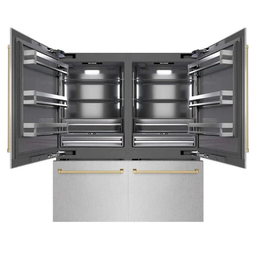 ZLINE 72" Built-In Bottom Freezer Refrigerator,Water Dispenser, Ice Maker, White Matte Graphite Gray Champagne Bronze GRBITZ-WM-72-CB