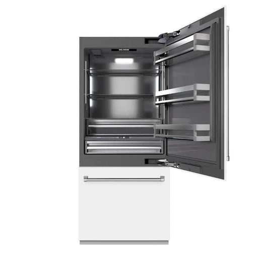 ZLINE 36" Built-In Bottom Freezer Refrigerator, Water Dispenser, Ice Maker, White Matte, Graphite Gray Interior GRBIT-WM-72