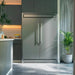 The side-by-side door design integrated into your kitchen layout with glass shelves and silver trim offers a sophisticated look and efficient storage solutions. With the ℉/℃ Transform Ease feature, you can effortlessly switch temperature settings.