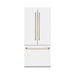 ZLINE 36" Autograph Edition French Door Refrigerator, Internal Water, Ice Dispenser, White Matte, Champagne Bronze Accents RBIVZ-WM-36-CB
