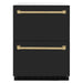 ZLINE Autograph Edition 24" Touchstone 168 Can Outdoor-Rated Dual Refrigerator Drawer, Black Matte Door, Accents RDSOZ-BLM-24-CB