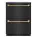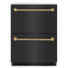 Luxury isn’t meant to be left desired—it’s meant to be attainable. The ZLINE Autograph Edition 24 in. Touchstone 168 Can Outdoor-Rated Dual Refrigerator Drawer with Black Stainless Steel Doors and Champagne Bronze Helix Handles (RDSOZ-BS-24-KCB) features state-of-the-art cooling technology, dual smooth glide soft-closing drawers, and an expansive interior capable of holding multiple beverages. Designed with a fully wrapped, anti-sweat stainless steel exterior and durable black stainless steel doors perfect for indoor or outdoor installation, ZLINE Autograph Edition Touchstone Refrigerator Drawers are masterfully crafted to let you host parties of any size for any occasion.