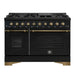 Forno Antico 48"Gas Range 8 Gas Burner Cooktop, Gas Convection Oven Black, Antique Brass Trim, FFSGS6219-48BLK