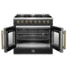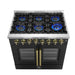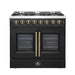 Forno Galiano 36"French DoorDual Fuel Range, Gas Stove, Electric Oven Black, Antique Brass Trim, FFSGS6356-36BLK