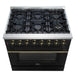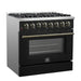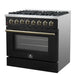 Forno Galiano Gold Professional - 36"Freestanding Dual Fuel Range Gas Stove, Electric Oven Black, Antique Brass Trim, FFSGS6156-36BLK