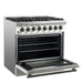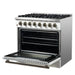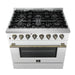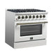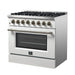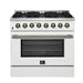 Forno Galiano Gold Professional - 36"Freestanding Dual Fuel Range Gas Stove, Electric Oven White, Antique Brass Trim, FFSGS6156-36WHT