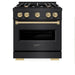 ZLINE 30" Classic Gas Range, Convection Gas Oven Black Stainless Steel, Champagne Bronze CGRBZ-30-CB