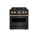 ZLINE 30" Dual Fuel Range, Gas Cooktop, Electric Convection Oven Black Stainless Steel, Champagne Bronze CDRBZ-30-CB