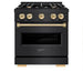 ZLINE 30" Dual Fuel Range, Gas Cooktop, Electric Convection Oven Black Stainless Steel, Gold CDRBZ-30-G