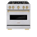 ZLINE 30" Dual Fuel Range, Gas Cooktop, Electric Convection Oven DuraSnow® Stainless Steel, Champagne Bronze CDRSZ-30-CB