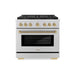 Luxury isn’t meant to be left desired—it’s meant to be attainable. The ZLINE Autograph Edition 36 in. 5.2 cu. ft. Paramount Gas Range with 6 Burner DuoPro™ Cooktop and Convection Gas Oven in Stainless Steel with Champagne Bronze Helix Handle and Accents (PSGRZ-36-KCB) features a high-powered gas cooktop with 6 hand-crafted Italian dual-ring brass burners and a versatile gas convection oven allowing you to master every meal. With ZLINE DuoPro™, every burner brings the performance you need—wherever you need it.