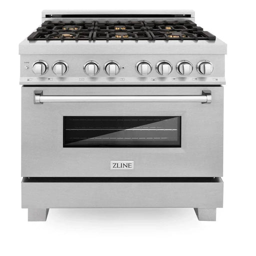 View full detailsZLINE 36" Dual Fuel Range, DuraSnow, Stainless, Brass Burners, RAS-SN-BR-36 FREE SHIPPING 1 Year Full Warranty 30 Day Retur...