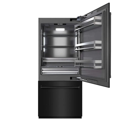 ZLINE 36" Built-In Bottom Freezer Refrigerator, Water Dispenser, Ice Maker, Black Stainless Steel, Graphite Gray Interior GRBIT-BS-36 ...