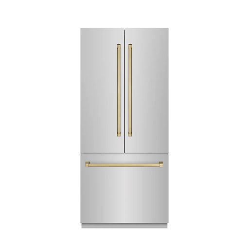 ZLINE Autograph Edition 36" French Door Built-In Bottom Freezer Refrigerator, Water Dispenser, Ice Maker, Satin Stainless Steel, Accents RBIVZ-SN-36-CB