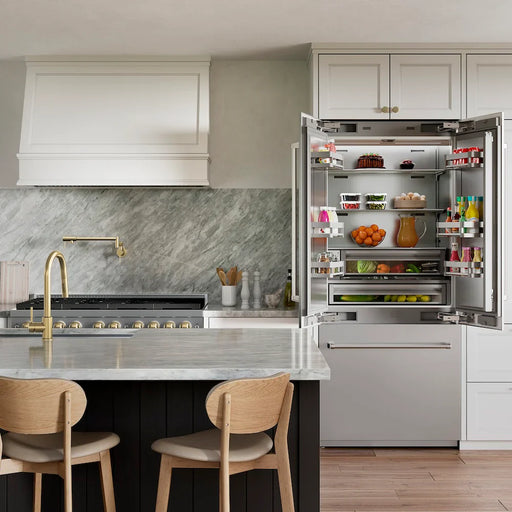 ZLINE 36" French Door Built-In Bottom Freezer Refrigerator, Water Dispenser, Ice Maker, Stainless Steel, Accents SRBIVZ-304-36CB Luxury isn...